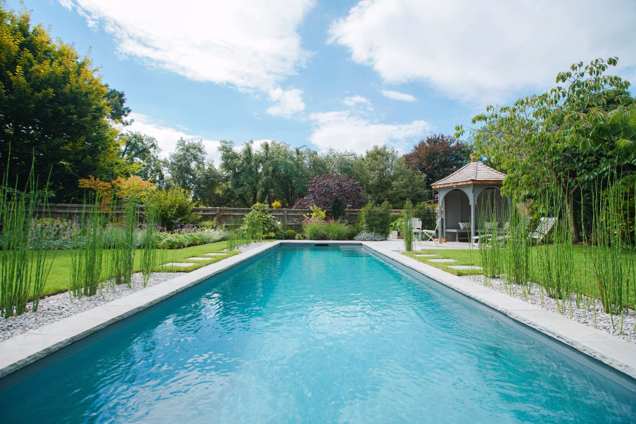 Although setting, lighting and weather play a vital part in how your natural swimming pool water looks, the finish will profoundly influence the perception of a pool. In our experience, natural colours ensure the pool’s appearance is in keeping with its environment and the ethos of our system. Grey, green and black liners work well for natural swimming pools as they offer rich water tones that complement both natural stone and surrounding greenery. Below are examples of a few of our projects and how we suggest achieving each colour.