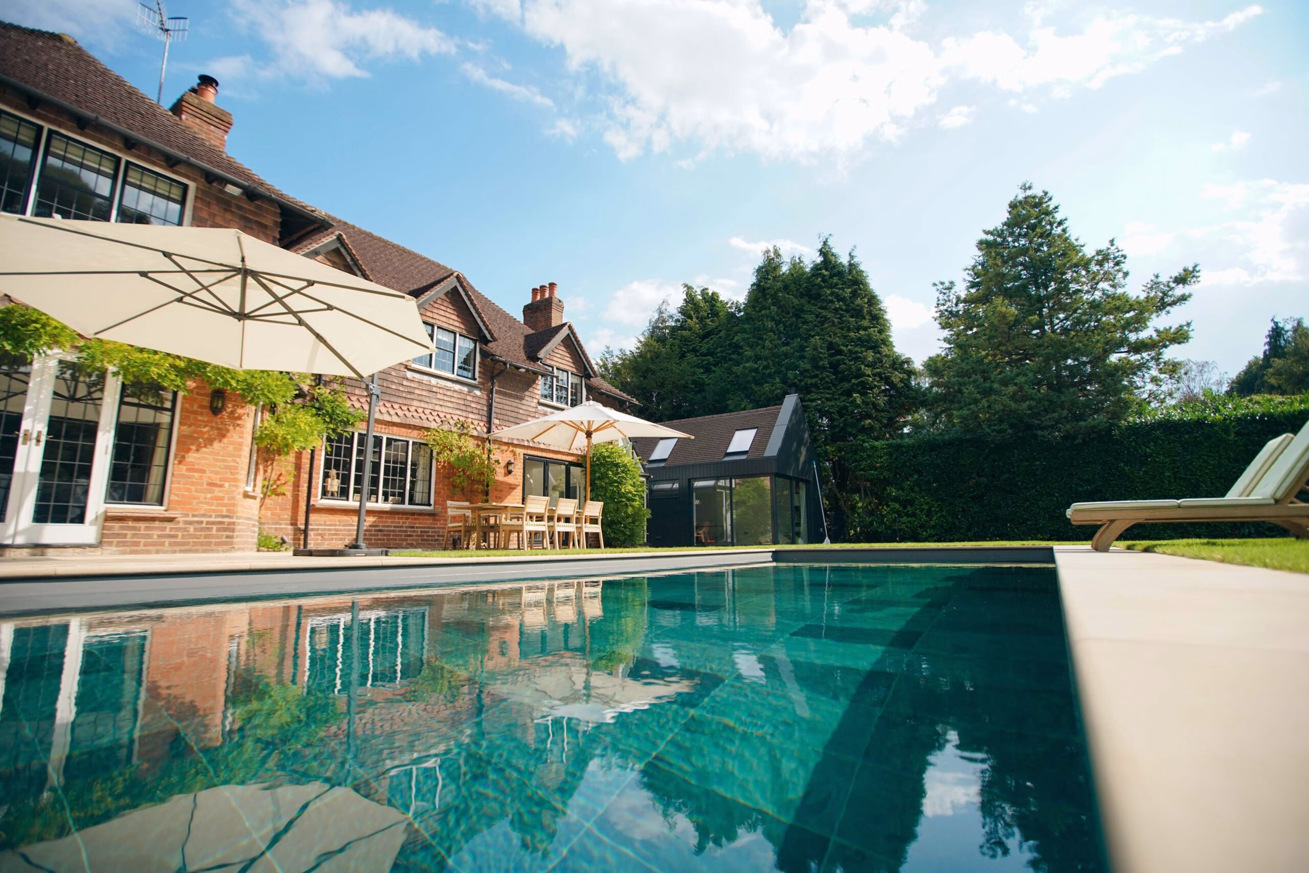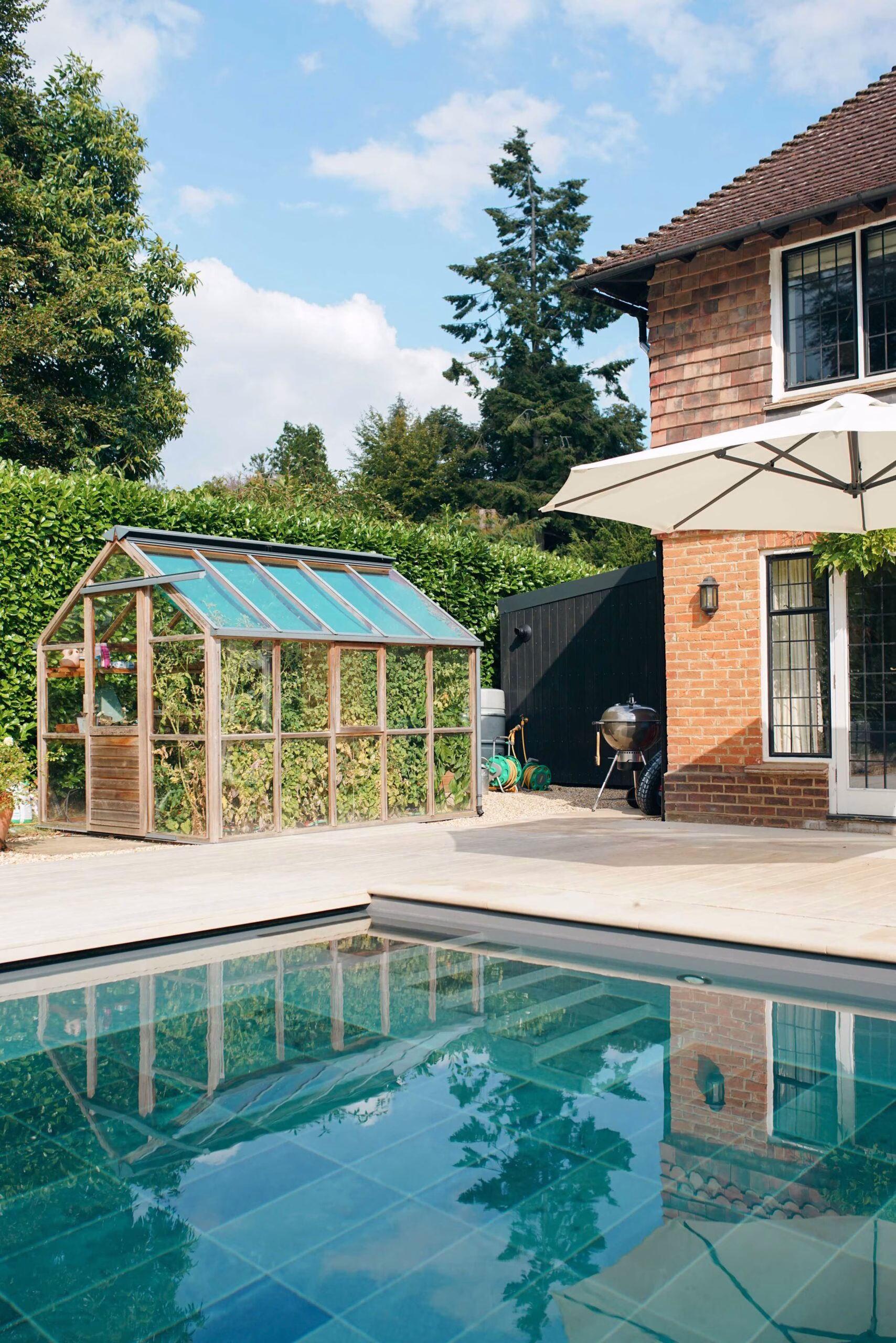 This insulated panel outdoor pool was designed for fast construction and high heat retention. A steel profile structure supports insulated steel sandwich panels and a concrete base and ring beam lock it into place. The system is then lined and the horizontal surfaces can be tiled.